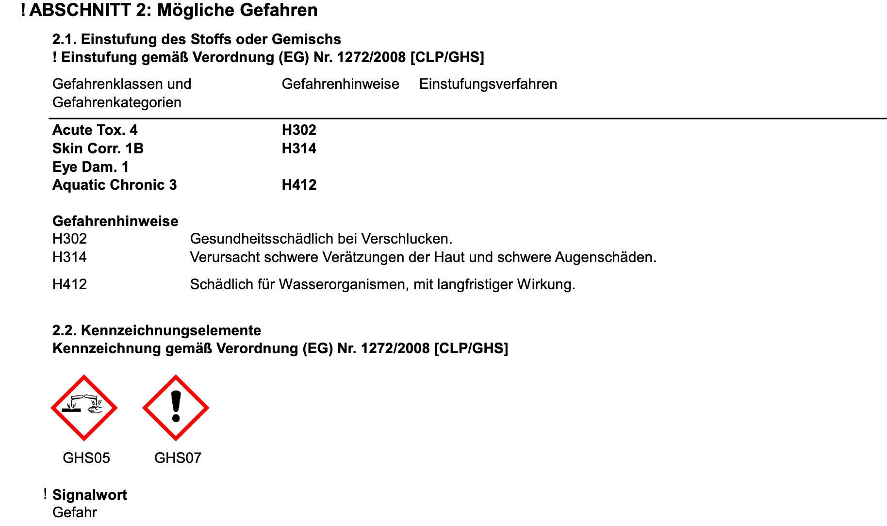 100 g des Produktes enthalten 90 g Kaliummonopersulfat.